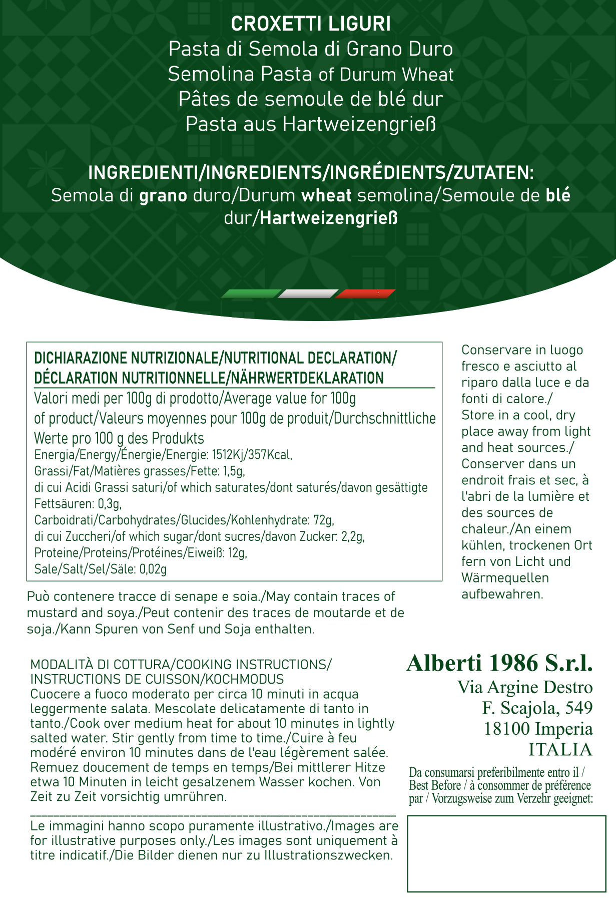 Typische Pasta der ligurischen Tradition. Hervorragend mit Walnusssauce, Pilzdressing („Tocco de funzi“) oder mit Pesto.